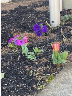 12月に植えたチューリップの球根が花を咲かせ始めました。