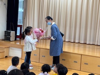 保護者の皆様より担任へお花とプレゼントの贈呈がありました。