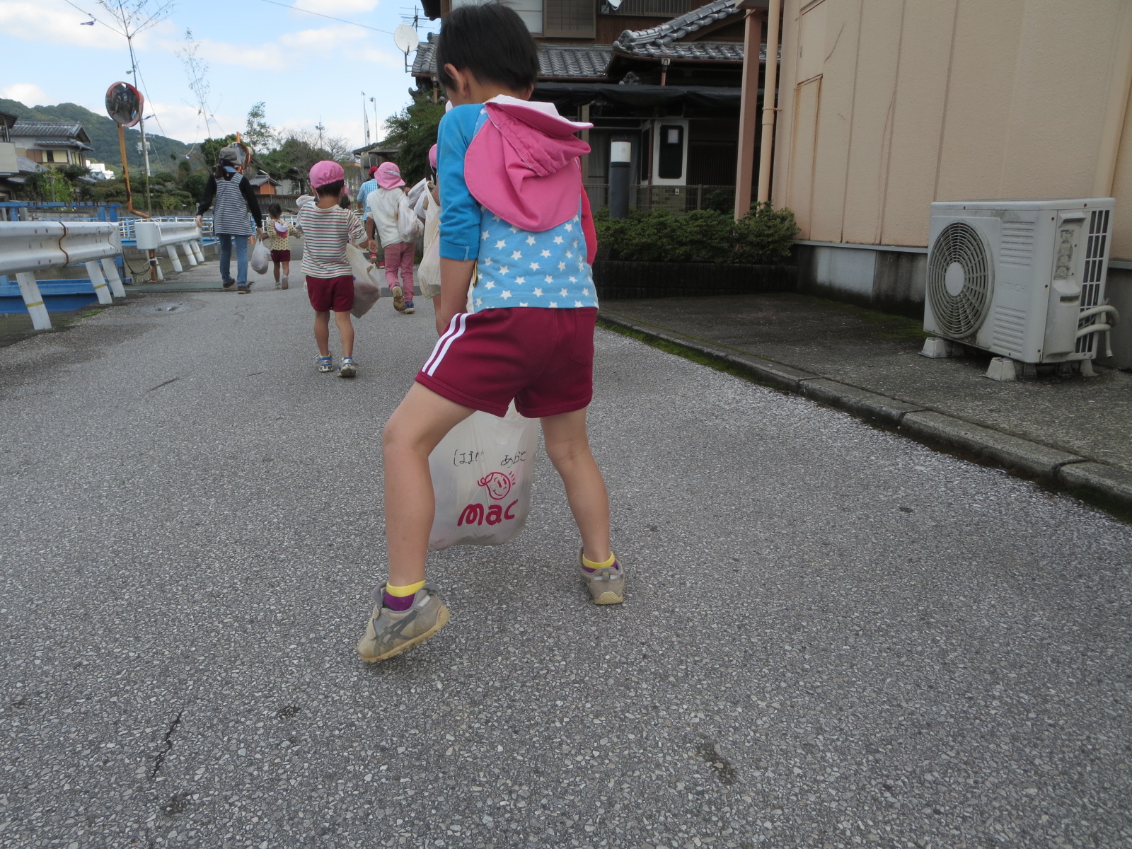 そんなに大きな袋を引きずって…。帰りは大丈夫??