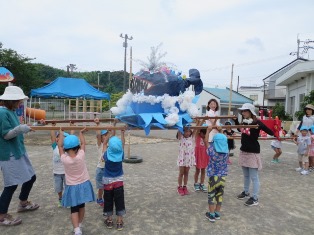 今日は、文字指導の後、竹太鼓の練習と、おみこし担ぎの練習をしました。