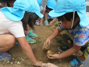 みんなはジャガイモを掘り当てて大喜び!