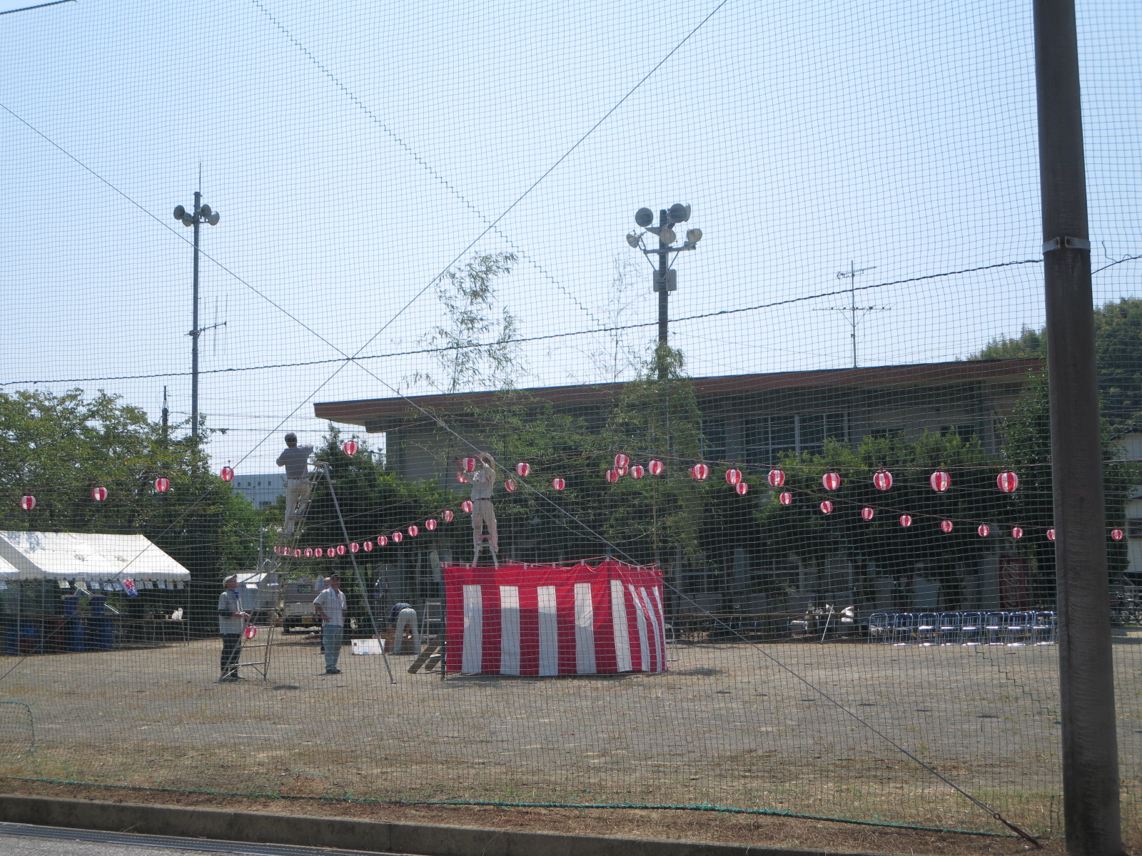 朝早くから地域の方々が集まり、準備に大わらわ。