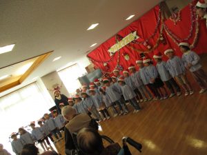 昨日はぶどう組とめろん組のお友達が近くの老人ホームロイヤルパレス横浜のクリスマス会にご招待をいただき訪問してきました。