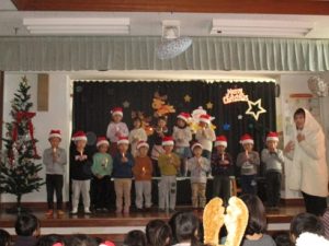クリスマスのお話を園長先生からききます。