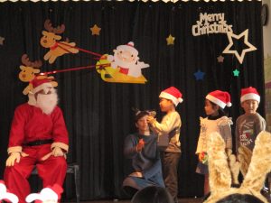 大忙しのちびっこサンタさん、今日はまた保育園でのクリスマス会。