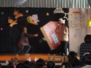 その後は毎年恒例、ほぼぶっつけ本番の職員劇。今年は「3匹のこぶた」。