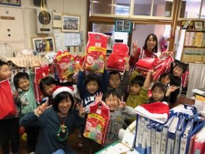 お楽しみのクリスマスプレゼント。年長さんは職員室に届いていました。