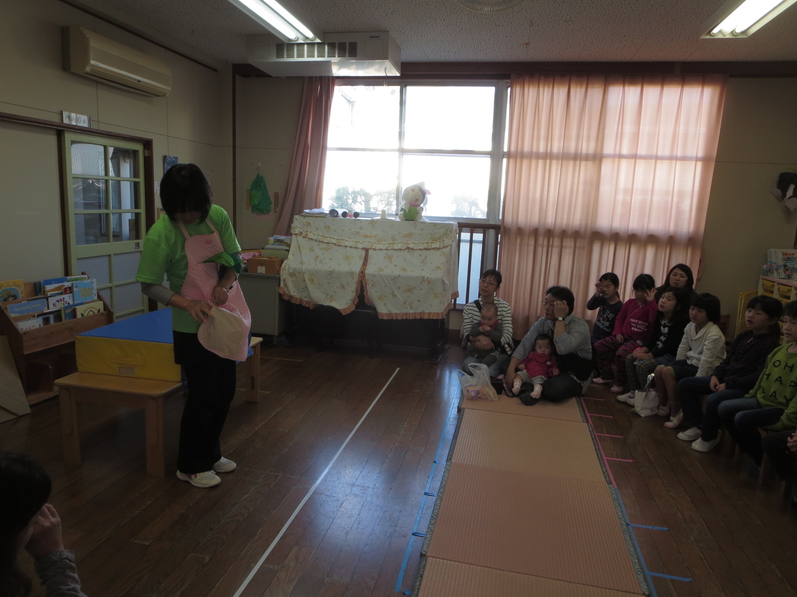 部屋では保育士によるエプロンシアターや大型絵本も楽しみました。
