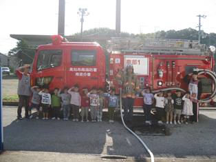 消防車と記念撮影(また貼り出すので見て下さいね)