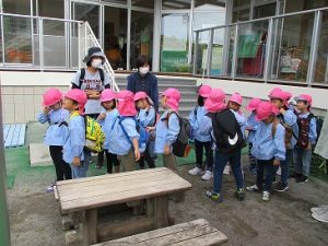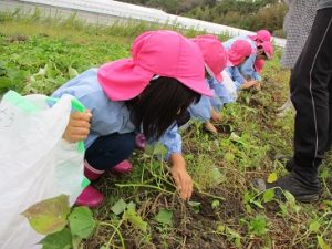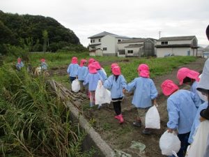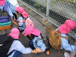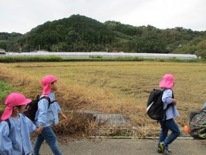ぶどう組のお芋ほり。長浜まで頑張って歩きます。