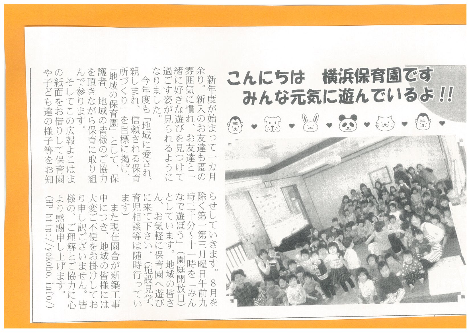 横浜保育園は地域に愛され、親しまれ頼りにされる保育所を創造していきます