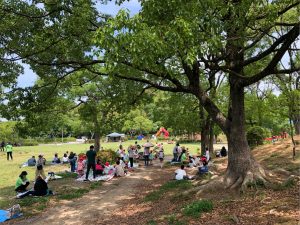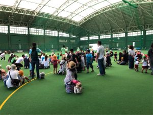 春野運動公園で親子遠足^_^ ツイート 今日は子ども達か楽しみにしていた春野運動公園親子遠足。 爽やかなお天気に恵まれ、絶好の行楽日和となりました^_^ 例年5月にしていた運動会と親子遠足を合わせました。少し歩いて室内運動場に移動。 お寺の和尚さんの手遊びをして体操で体を動かし 親子対抗の玉入れ。 大人は途中で籠が動いたり高くなるハンデを付けて子ども達の大勝利!! 親子で楽しく参加をし、運動公園に戻って美味しいお弁当を頂きました。 お弁当の準備等ありがとうございました^_^