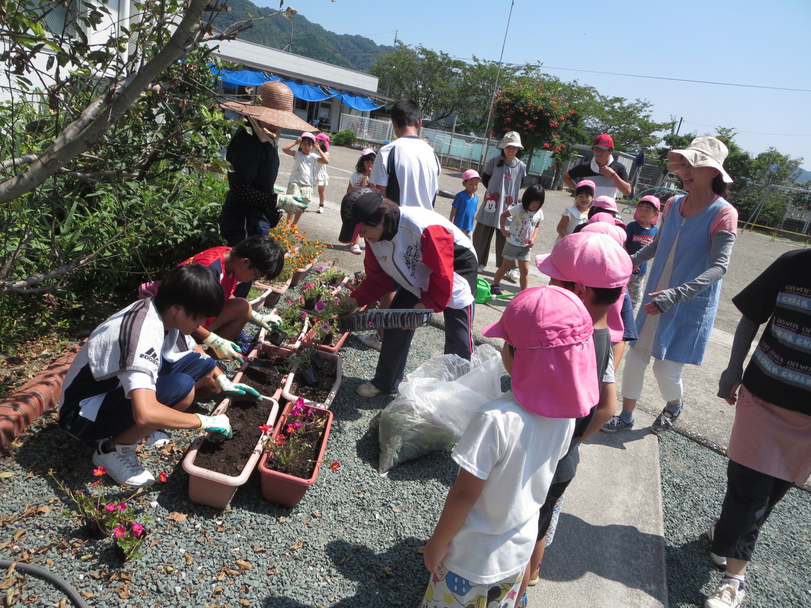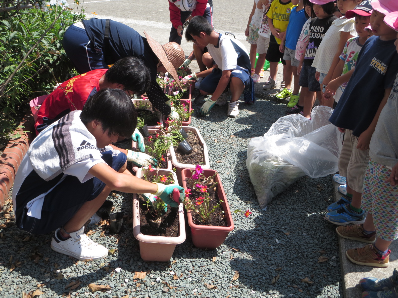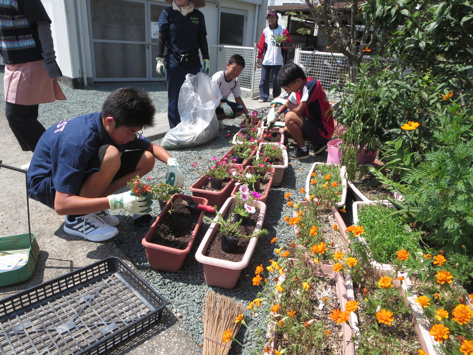 19日(火)横浜中学校生徒会の皆さんが花植えに来てくれました。
