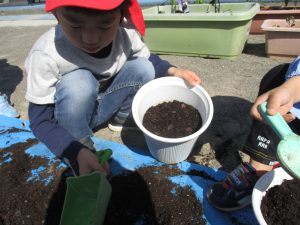 一人ひとりがマイ鉢に土を入れるところから始まったわ。