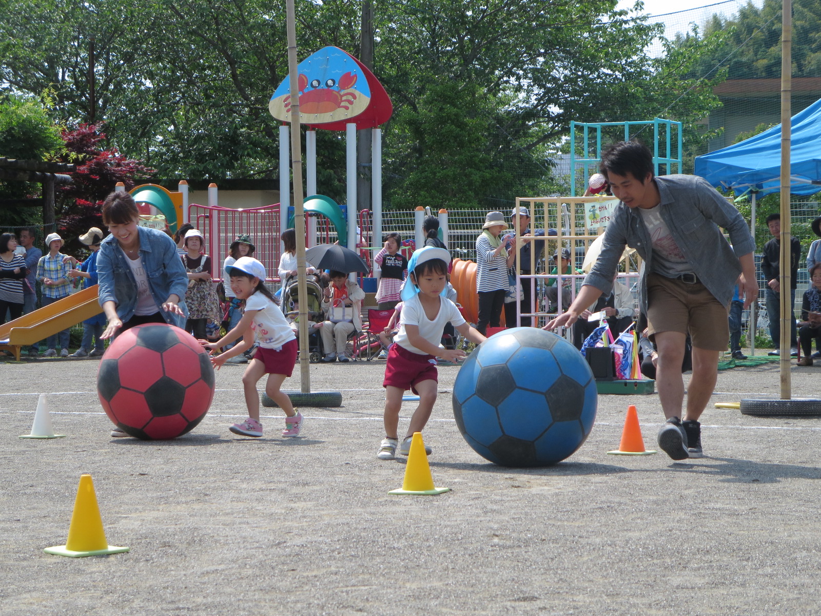 年中組は大玉ころがしとおんぶでこいのぼりリレー